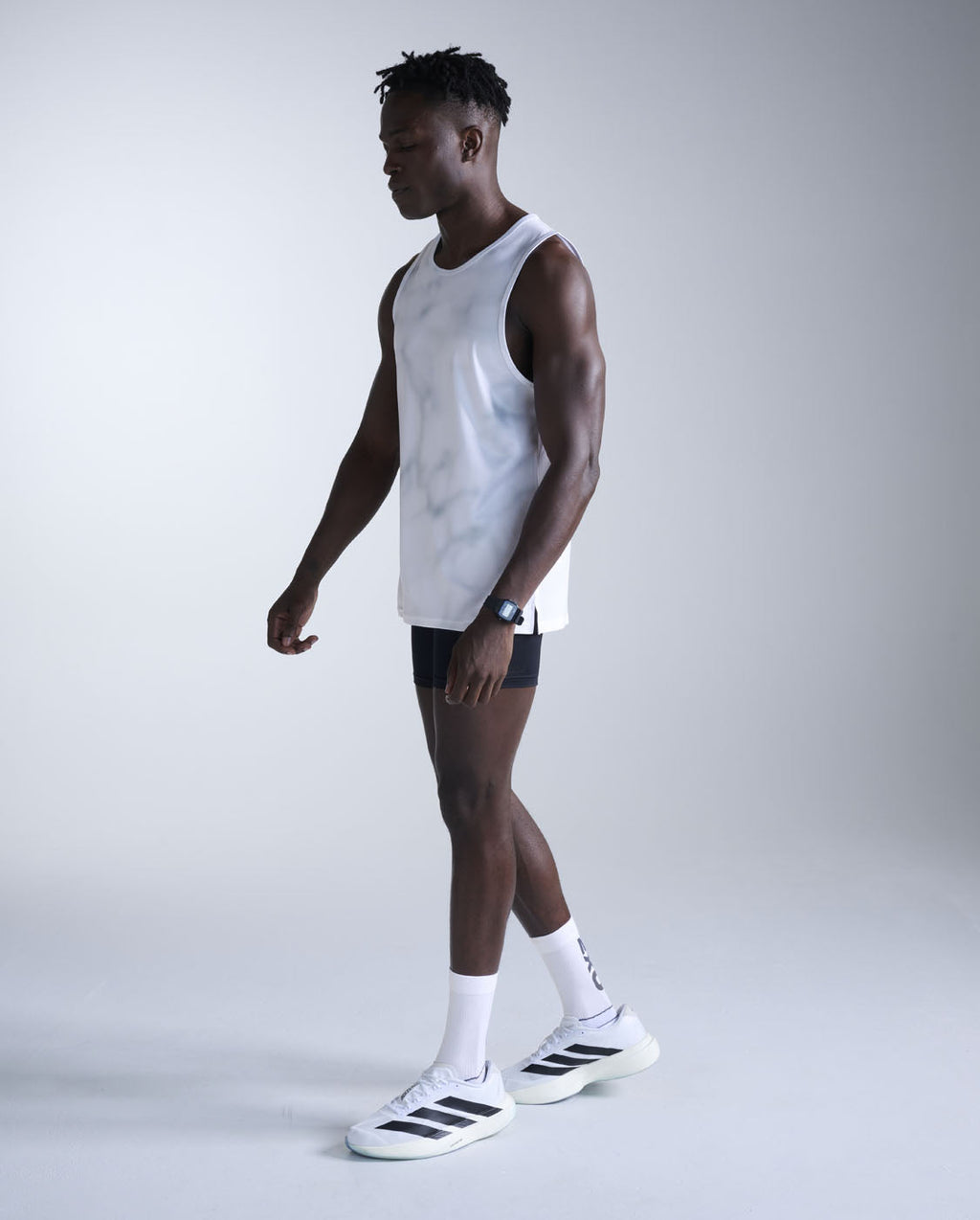 Powerful, lightweight PWX fabric with circular knit 360-degree stretch, reduces muscle movement and damage whilst maintaining flexibility for ultimate sports performance.